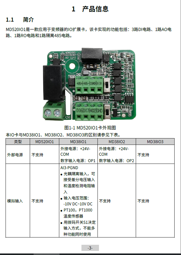 匯川變頻器MD520IO1擴展卡